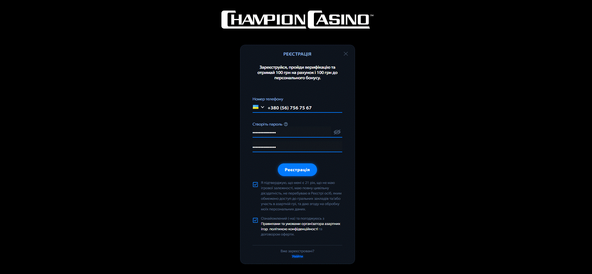 Реєстраційний процес на платформі Чемпіон